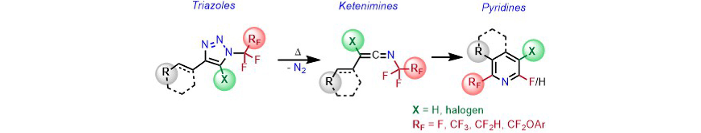 2-Fluoroalkylated pyridines and fluoropyridines were synthesized via ketenimines derived by thermal denitrogenation of triazoles (Journal of Organic Chemistry 91: 2232, 2026).