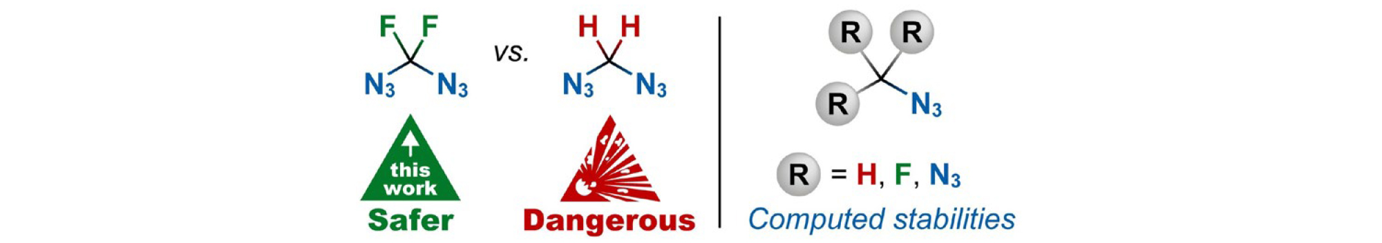 Diazidodifluoromethane, the first stable diazidomethane was prepared and stabilities of fluorinated and nonfluorinated organic azides was evaluated computationally (Chemical Communications 61: 885, 2025).